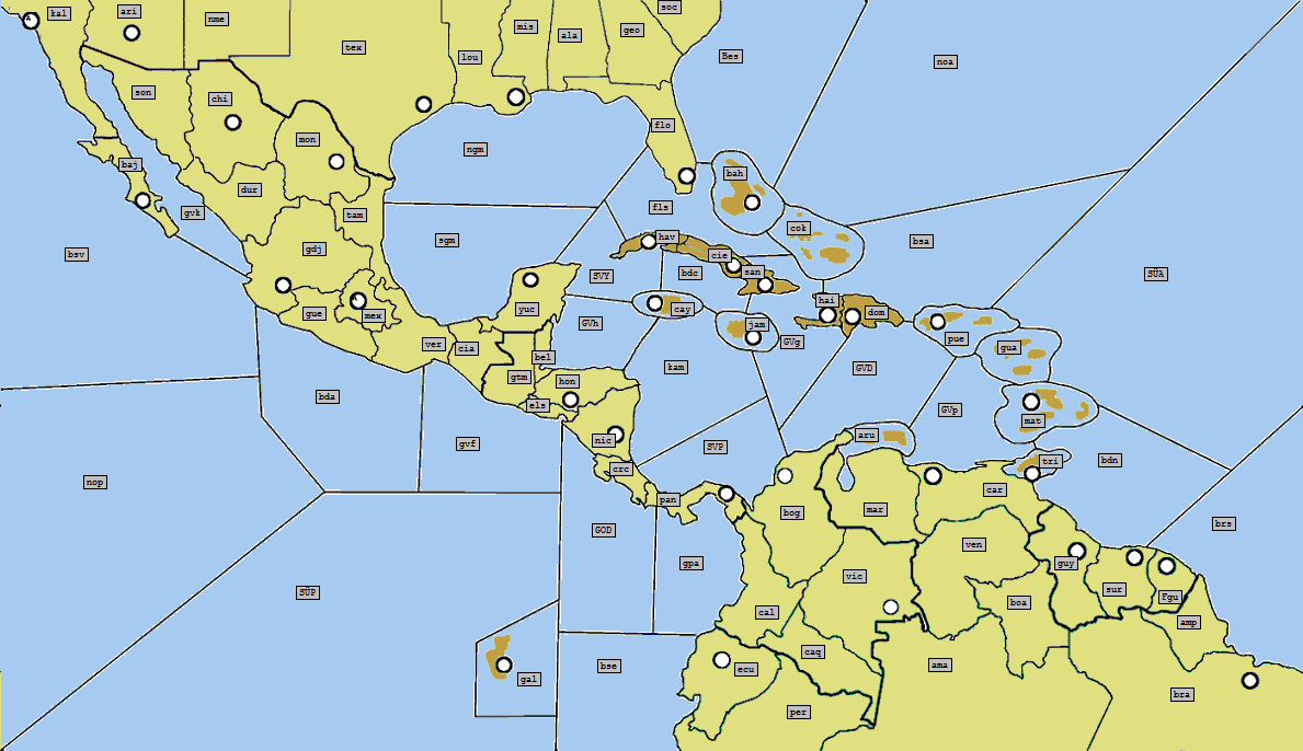 Bah, Cay, Cie, Dom, Hai, Hav, Hon, Jam, Nic, San, Yuc | |